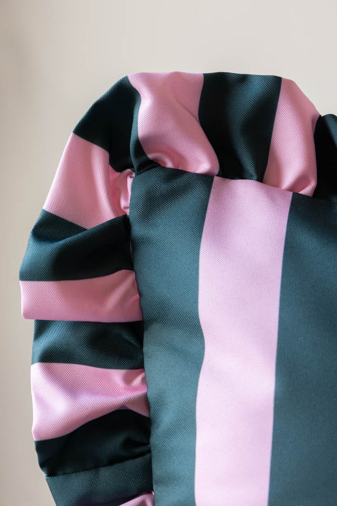 Pink & Green Stripe Outdoor Cushion with Frill Edge