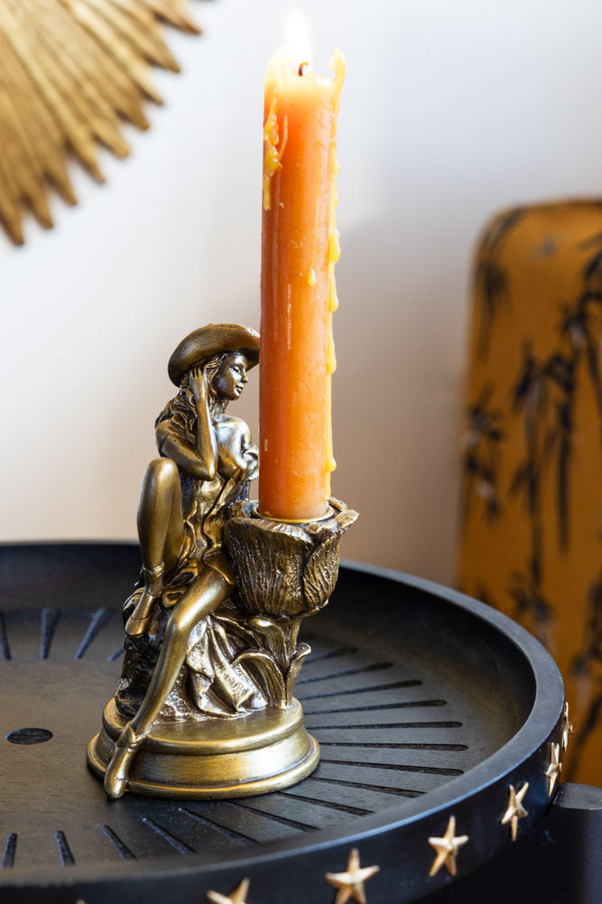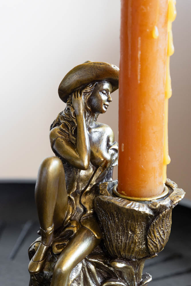 Gold Cowgirl Candlestick Holder