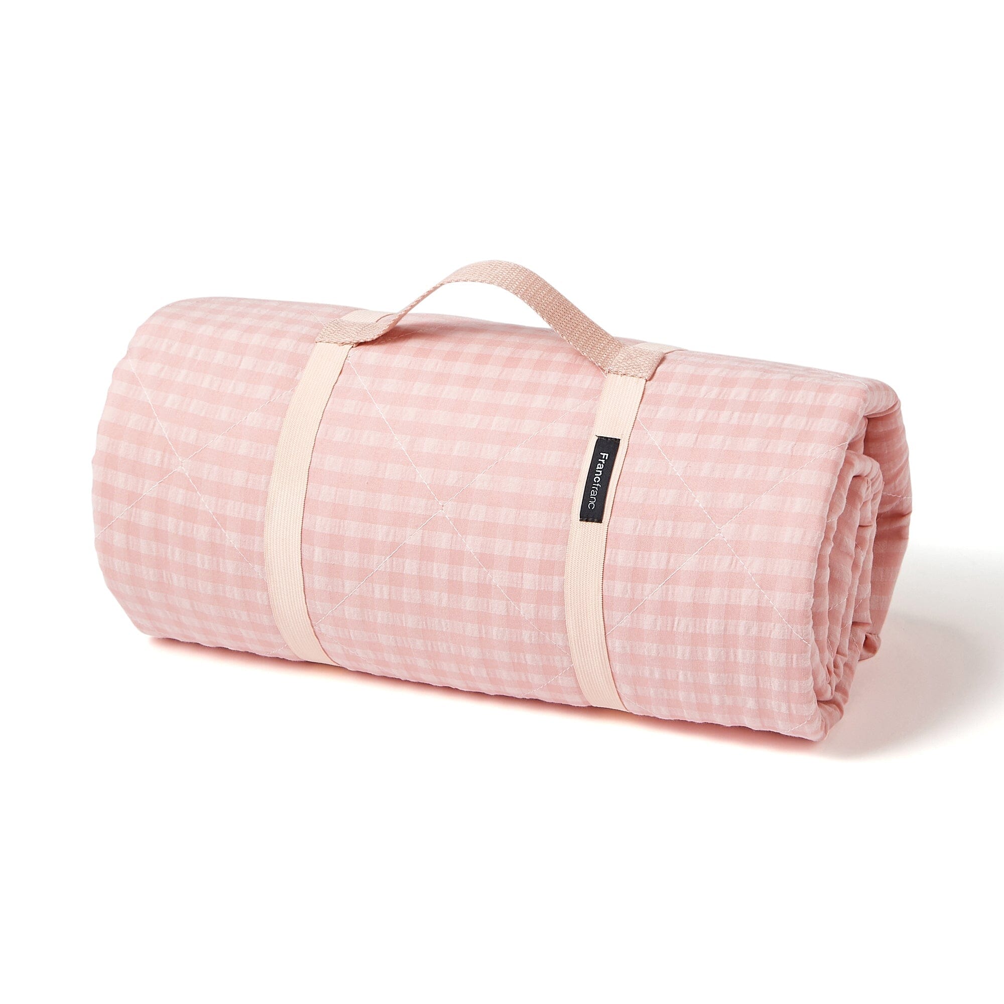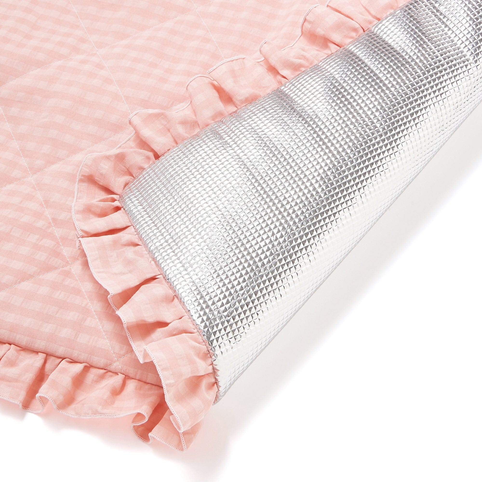 A cute leisure sheet with a checkered pattern and frill design.The back side is made of waterproof material. You can use it safely outdoors.