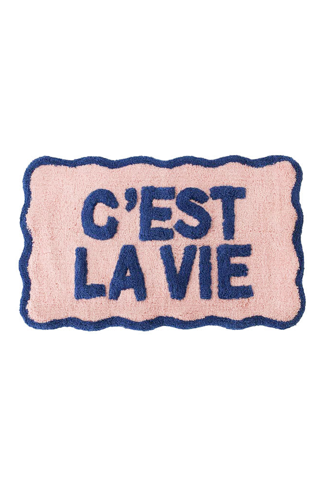 - Navy & Pale Pink C'est La Vie Bath Mat