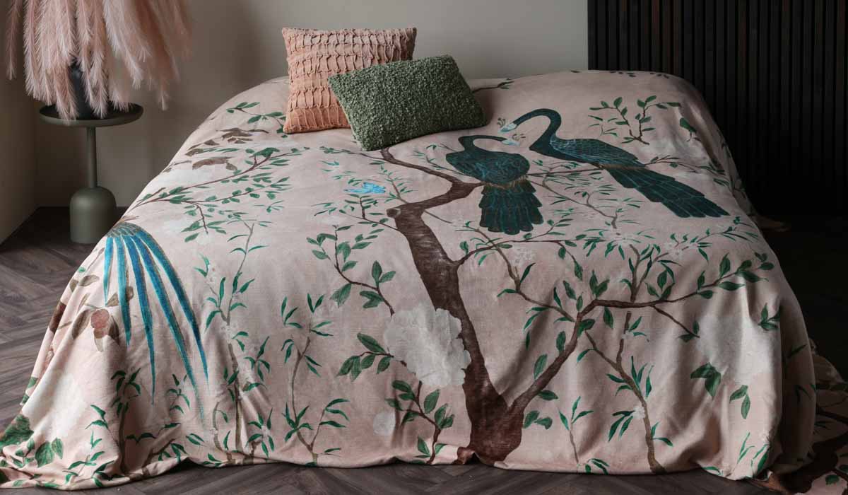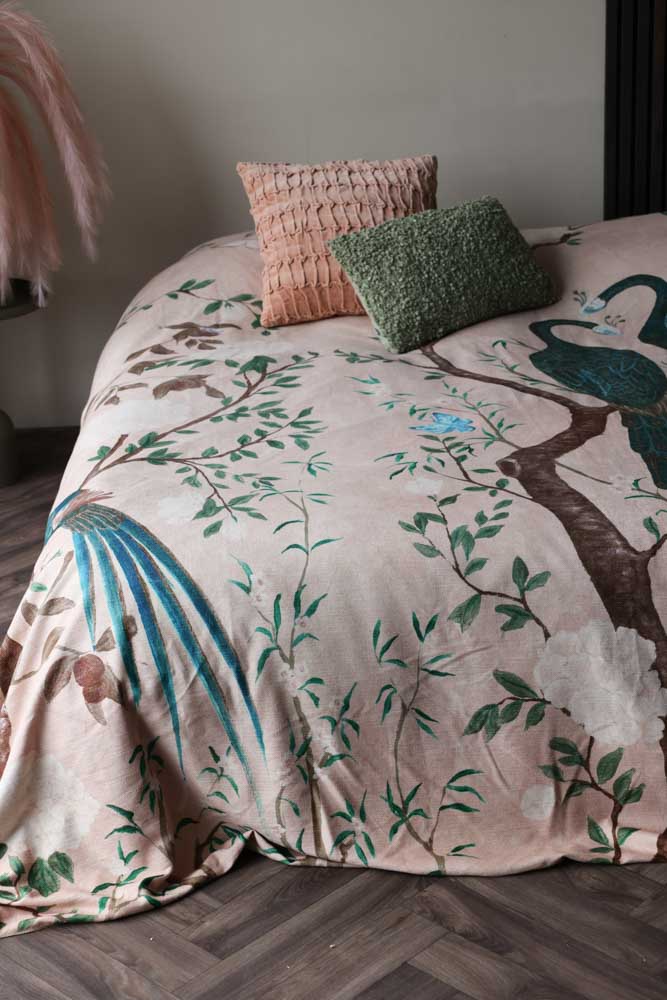 Showcasing a meditative and relaxing picturesque design, this peacock quilt is ideal for injecting a naturistic atmosphere within your home. Its mesmerising pattern is expressed through the combination of colours and forms making it a beautiful piece of art in and of itself. Exuding a feeling of harmony with nature, we think this pink tapestry is a must-have!