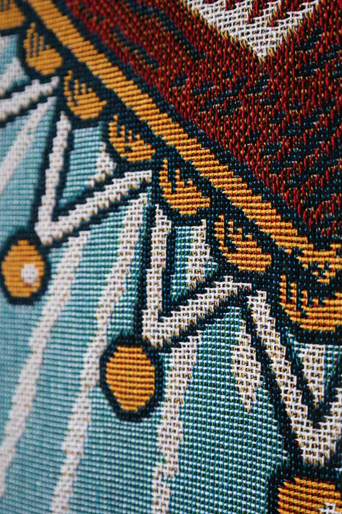 Showcasing remarkable attention to detail, this colourful picnic blanket is utterly eye-catching, the longer you observe its beauty the more you see. Perfect for making a striking statement in your home, this large blanket can be used to cuddle up on wintery nights or hung up as a stunning piece of wall art.