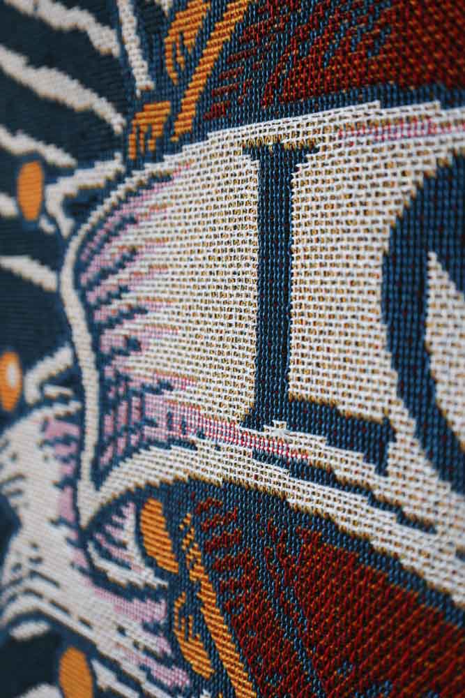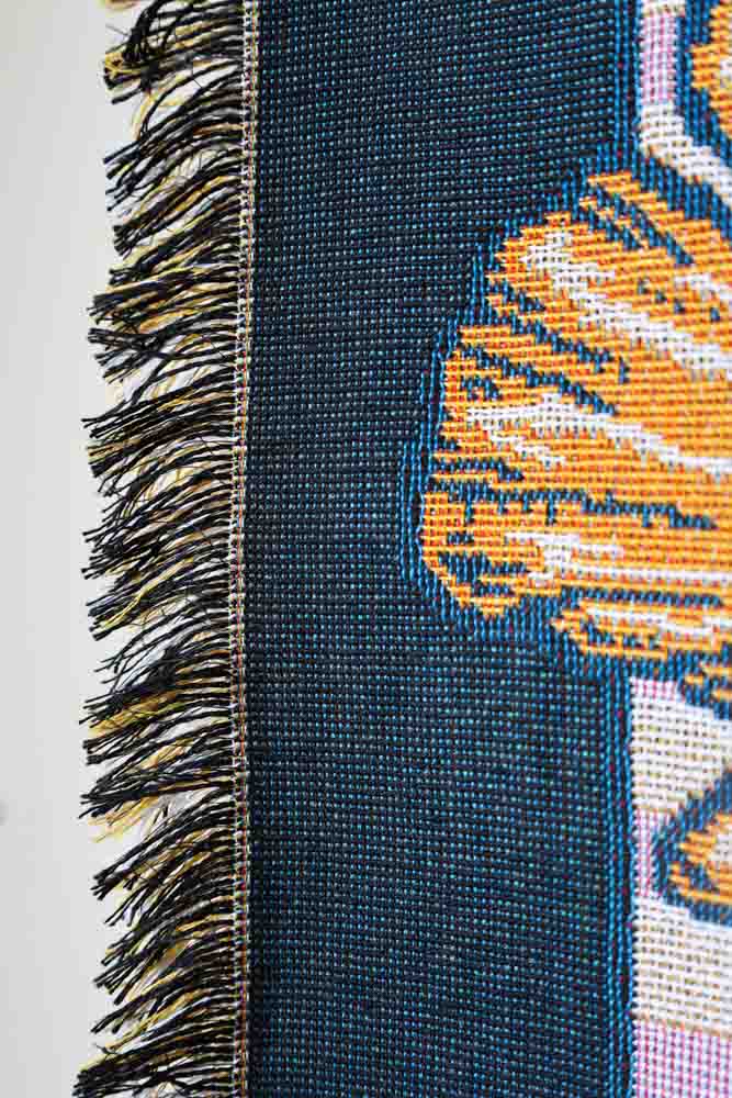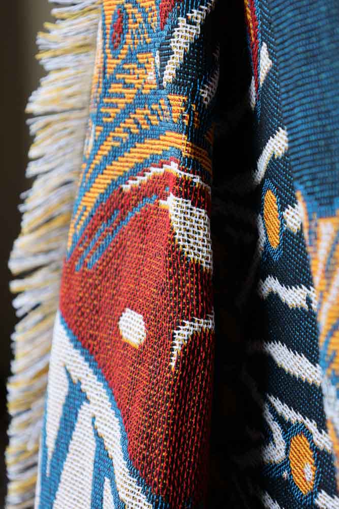 Showcasing remarkable attention to detail, this colourful picnic blanket is utterly eye-catching, the more you look at its beauty the more you see. Perfect for making a striking statement in your home, this large blanket can be used to cuddle up on wintery nights or hung up as a stunning piece of wall art.