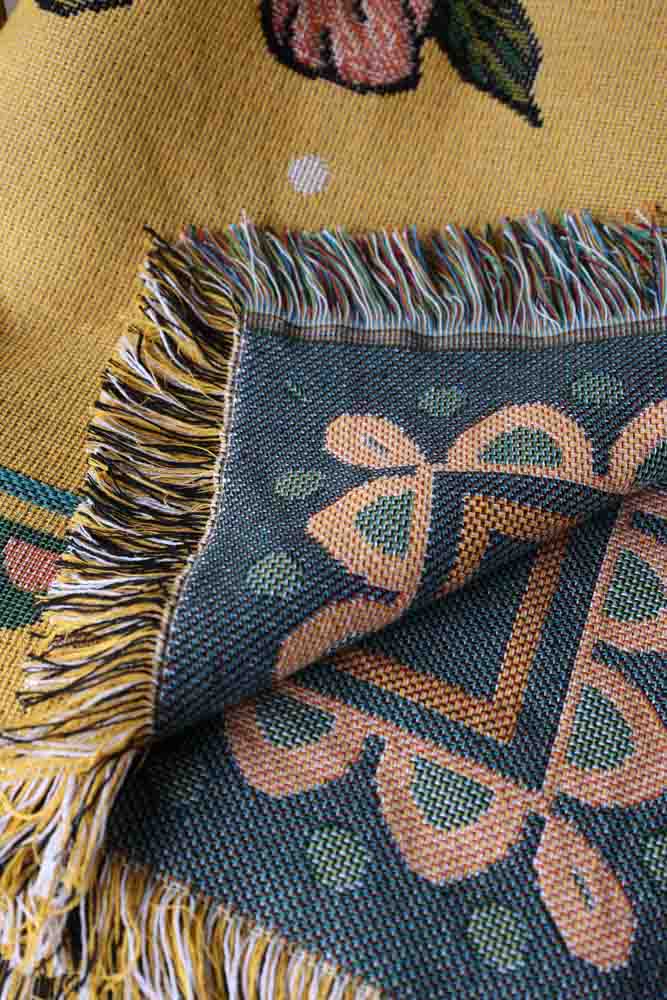 Designed in a gorgeous shade of sunshine yellow, a colour renowned for happiness and positivity, the chilled out sofa throw is the ultimate piece of dopamine décor! With complimentary colours of pink, blue and yellow woven into the design, the chilled out throw celebrates the ancient evil eye talisman believed to offer the wearer/owner protection from evil and pairs this with beautiful pale pink flowers and a colourful geometric border. Perfect for bringing a healthy dose of sunshine into your home, whatever the season, this fabulous yellow throw is ideal for anyone looking to introduce more colour to their home.