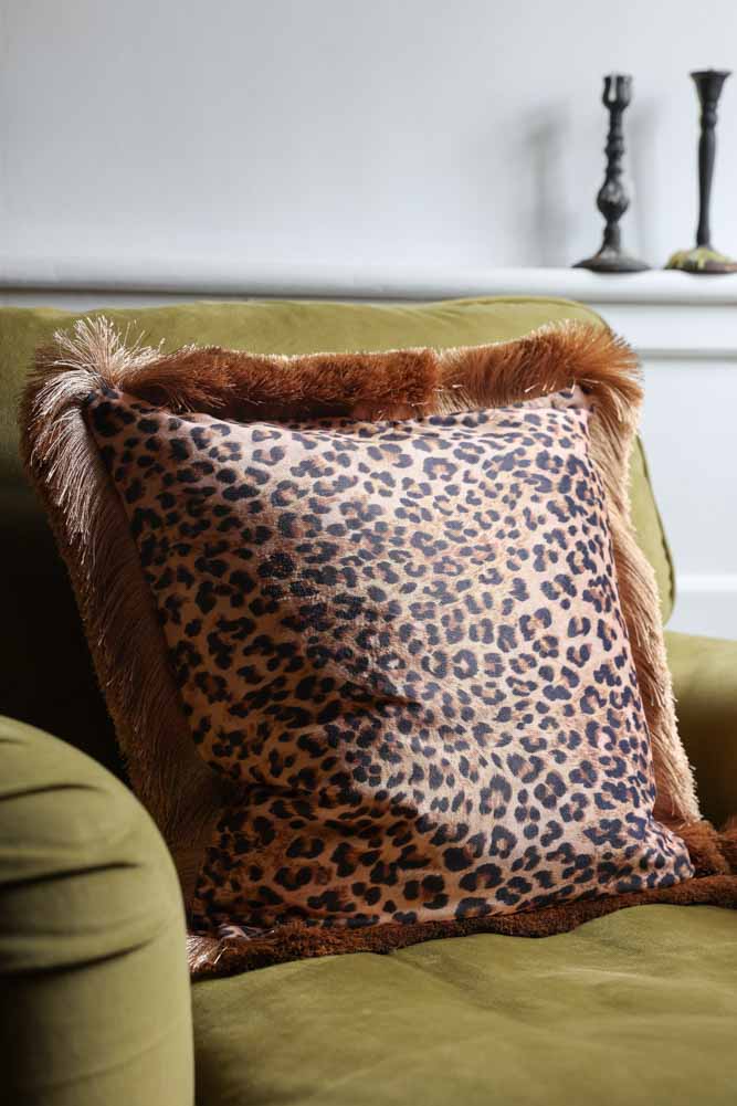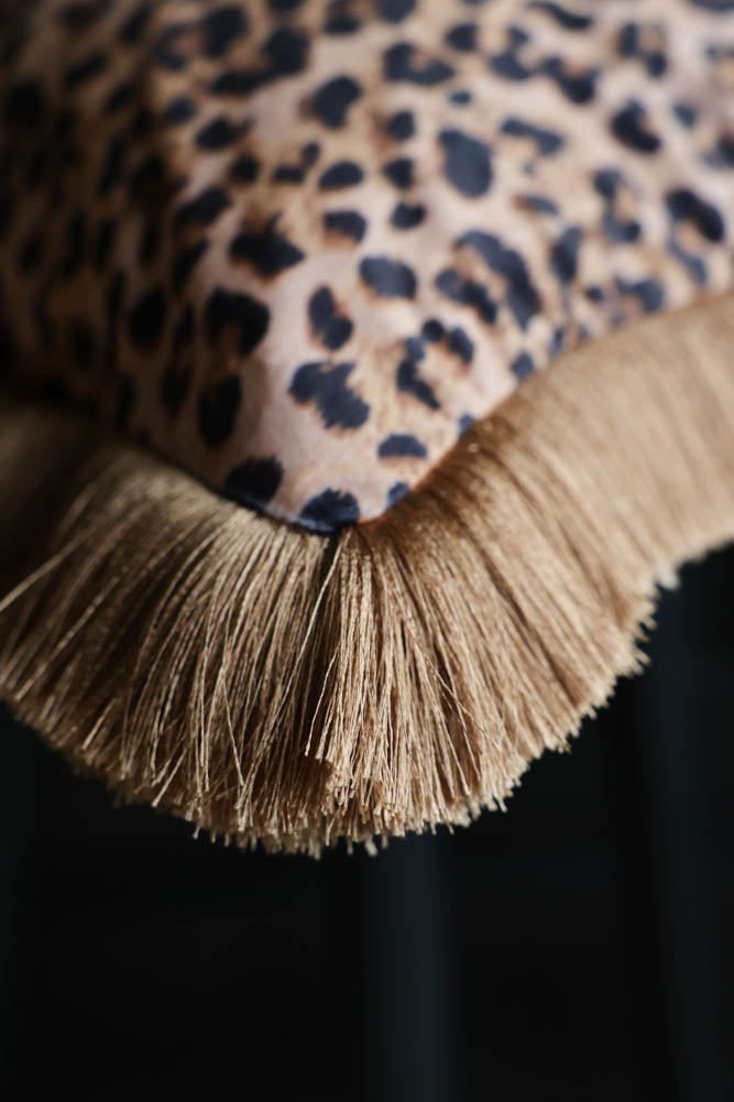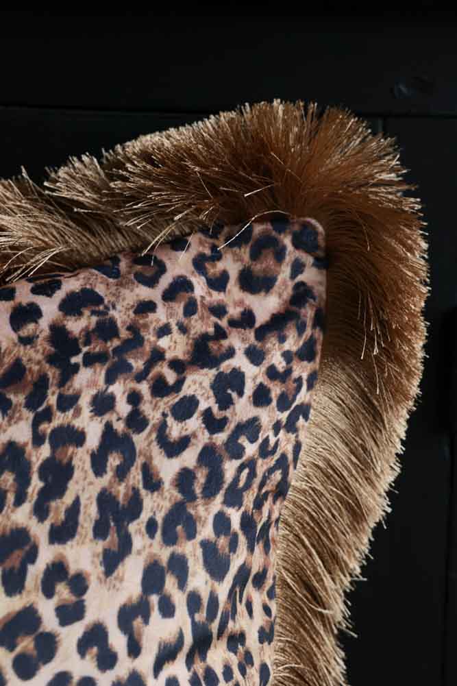Say hello to sofa cushions that are simply best in class! Our Leopard Love Cushion with Frill Edge Detailing brings sass, and a little wilderness to your space. Wrapped in a bold and beautiful leopard print, this indoor cushion is finished with luxe, gold-toned tasselled edges for that extra bit of glam. Perfect for adding a pop of personality to your sofa or bed, this decorative cushion isn’t just a pretty face – it’s soft, squishy and made for lounging in style. Pair it with velvets, neutrals, or let it steal the spotlight all on its own. However you decide to style it, this leopard print cushion is ready to pounce into your home and heart.
