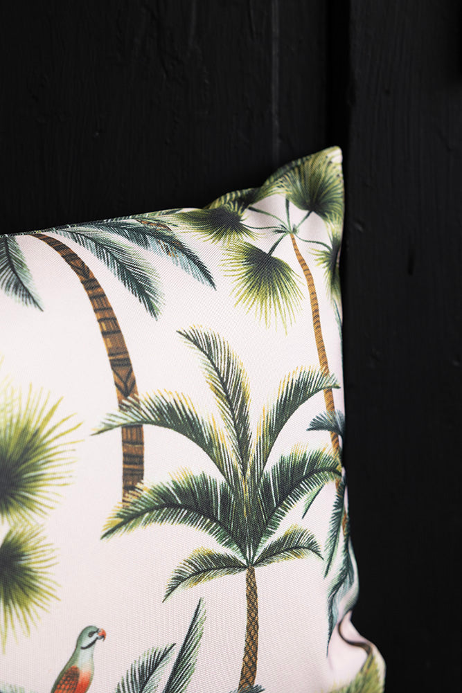 Say hello to the Palm Print Outdoor Cushion – your ticket to instant summer vibes. With its soft pale pink backdrop, lush green palms and a few colourful birds chilling on top, this garden cushion is all about bringing that exotic, sun-soaked feel to your outdoor space. It’s vibrant and playful, plus, pink and green? Name a better colour combo, we’ll wait. Perfect for brightening up your garden chairs, outdoor sofas or even just tossing amongst your existing outdoor garden cushions to enhance the tropical vibes. Summer lounging never looked so good!