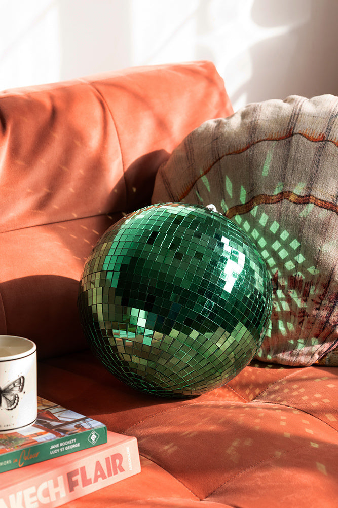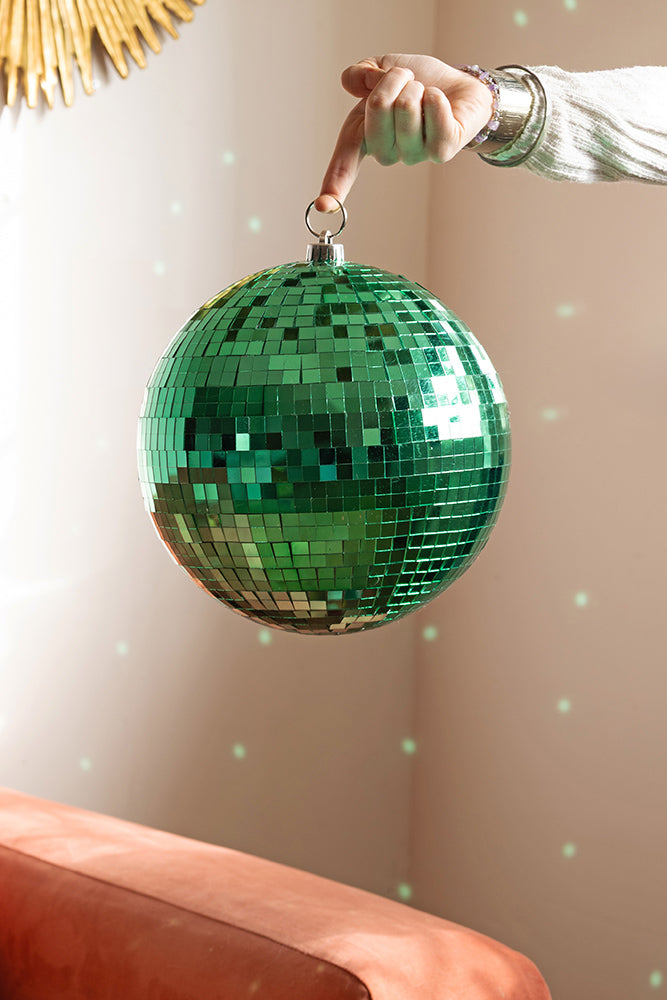 Say hello to the Green Disco Ball! This bold, fresh and vibrant twist on a party classic is here to shake things up. With dazzling green mirror tiles, this mirror ball casts an uplifting, energetic glow that takes your space from ordinary to electric in seconds. Whether you’re throwing a Studio 54 inspired party, setting the mood for a retro-themed event or just want a splash of colourful fun in your space, this standout disco ball delivers. Hang it up, hit it with some light and watch as it fills the room with dynamic, shimmering green reflections – pure magic! Silver is standard, but green is a vibe. Ready to glow?