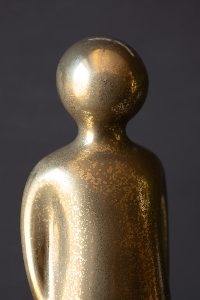 Meet your new favourite golden little friend. This charming living room ornament is the perfect mix of minimalist and fancy - simple in shape but dripping in golden goodness with a subtly weathered finish. This figurine is giving modern art with a vintage soul. Whether standing proudly on your shelf, keeping your other home ornaments company, or adding flair to your coffee table, this figure promises to turn heads. Cute, stylish and the perfect amount of quirky - what's not to love?
