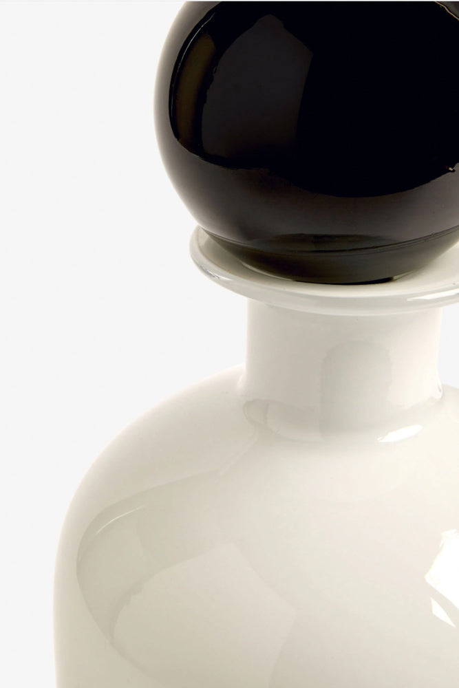 The White & Black Apothecary Bottle celebrates vintage glamour with a contemporary twist. Far more than just a glass bottle, this hardworking home accessory can be used for displaying seasonal flowers or storing everything from bath salts to spirits or olive oil in style. Revealing the power of monochrome, the apothecary bottle joins our collection of unusual decorative accessories that make a statement. Made from glass with a contrasting black bottle stop, the glassware in your home never looked so good!
